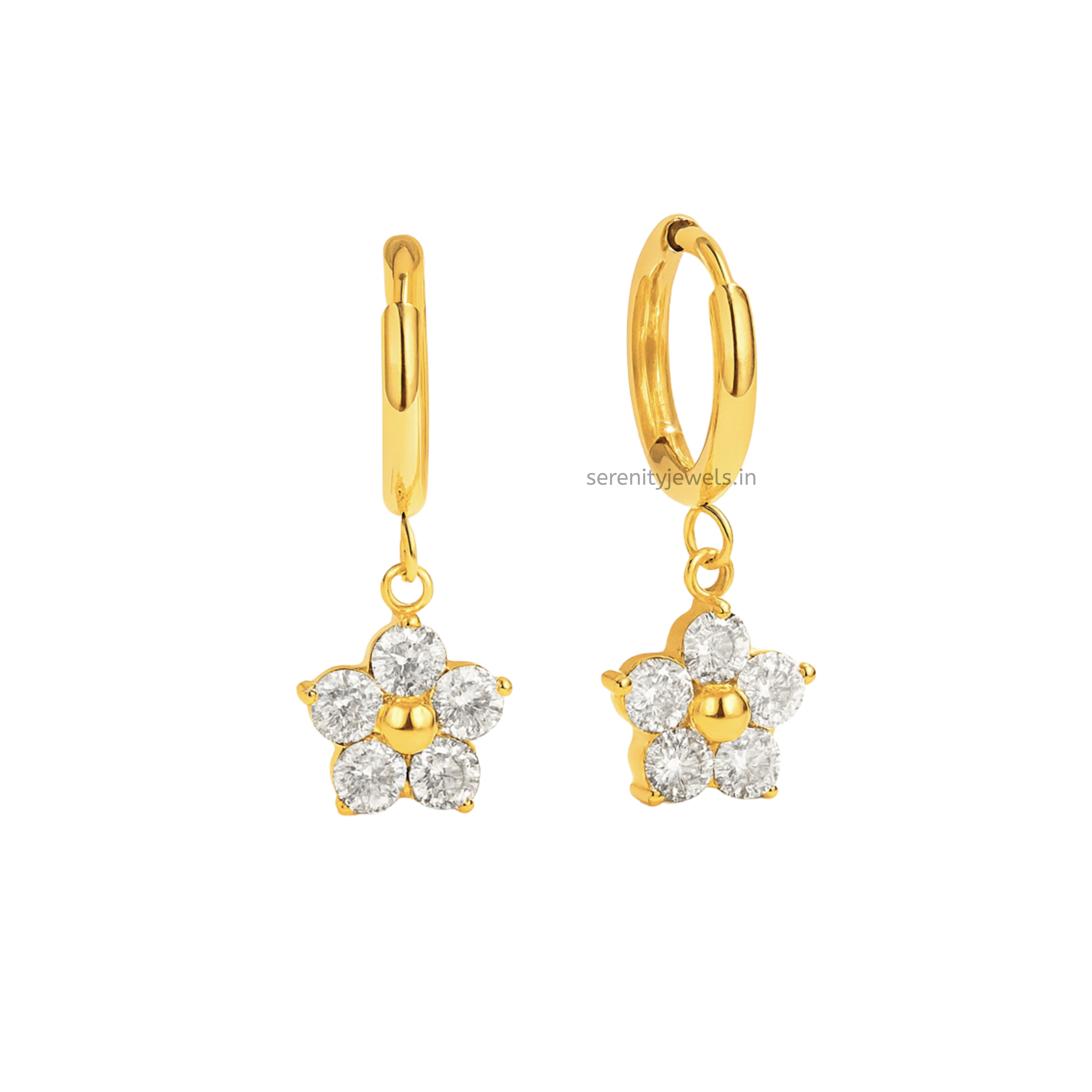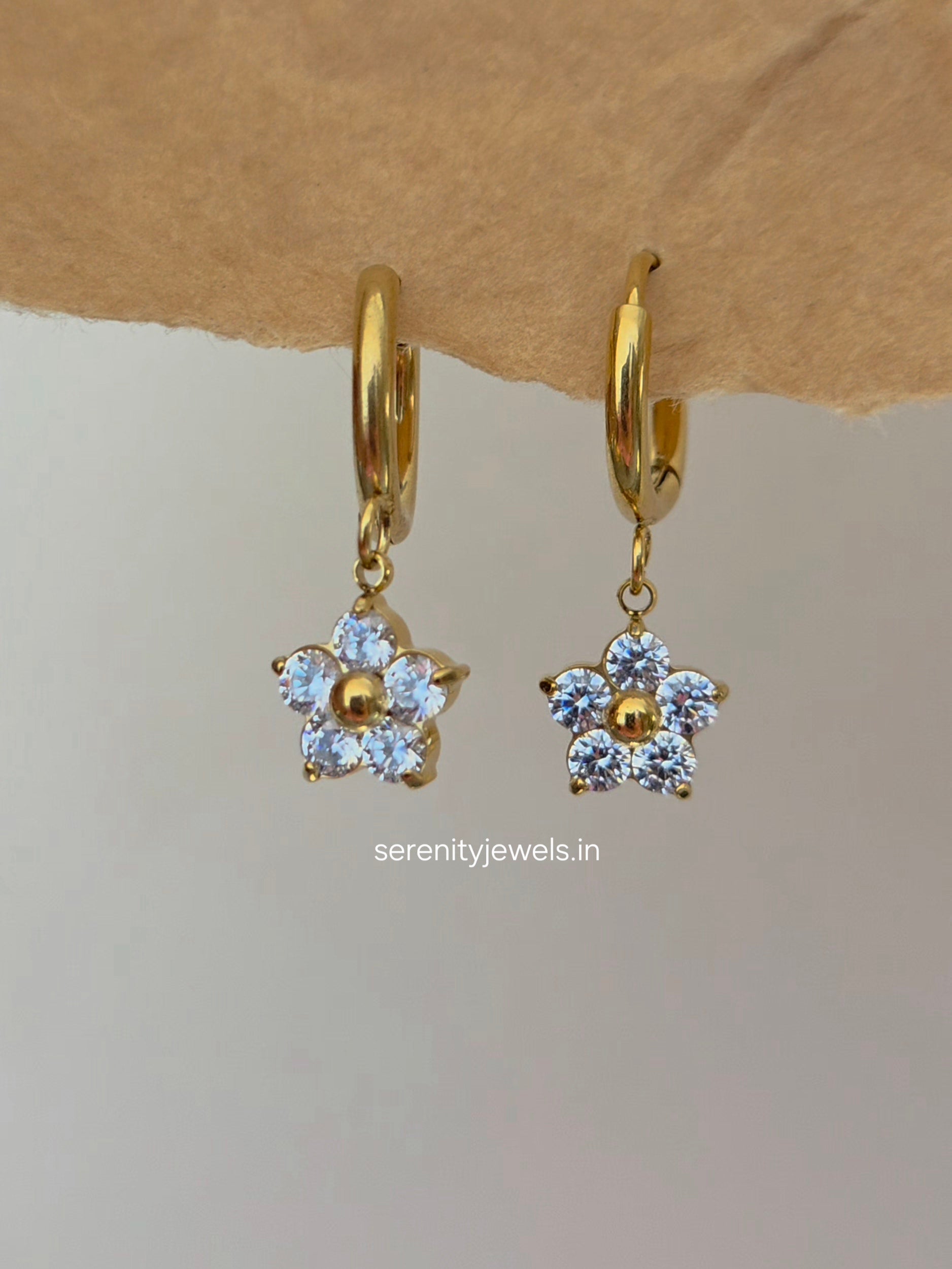 - Size : 0.9 cm flower , total length of earrings from hoops : 2.7 cm