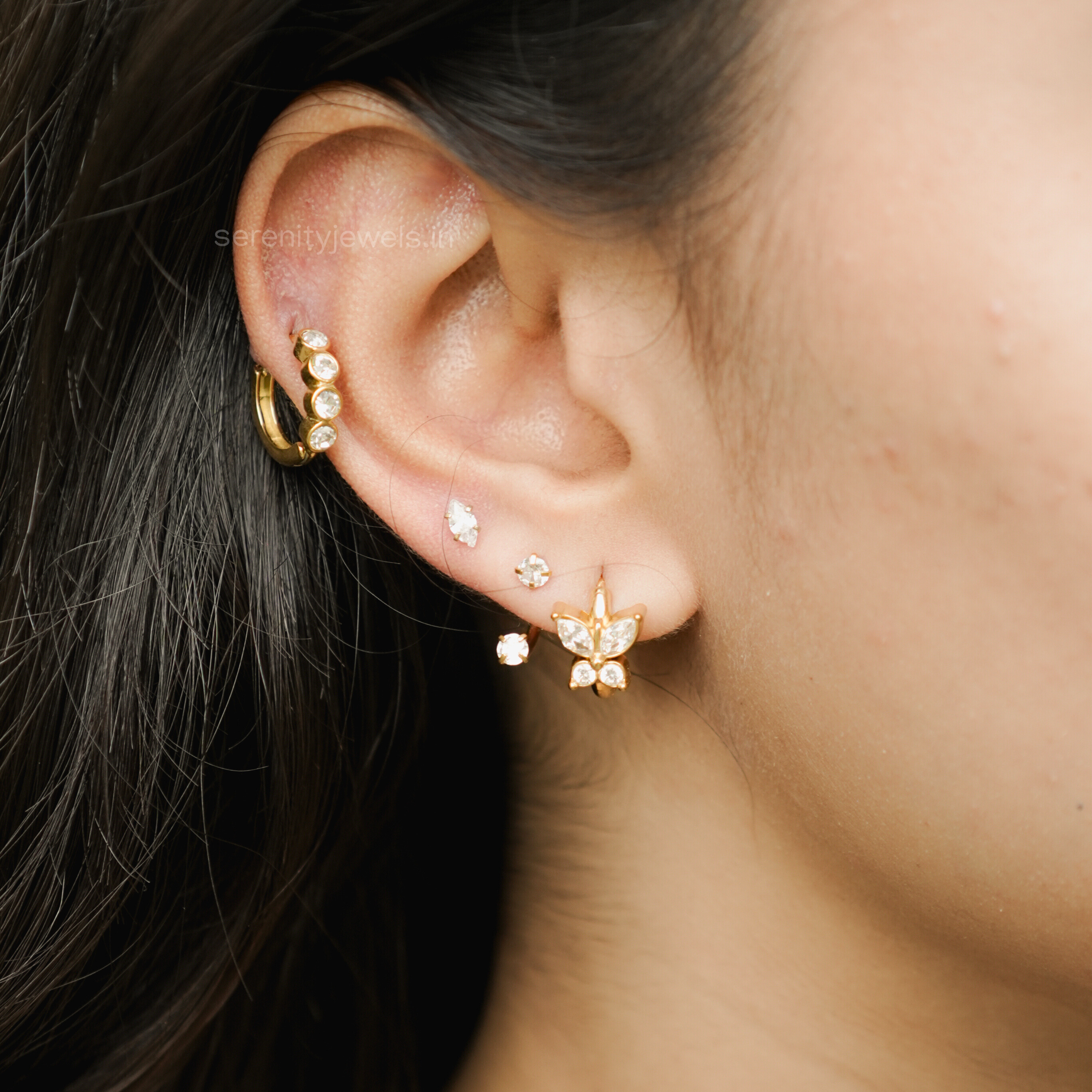 - Metal: Stainless Steel + 18kt gold plating with zircon stones