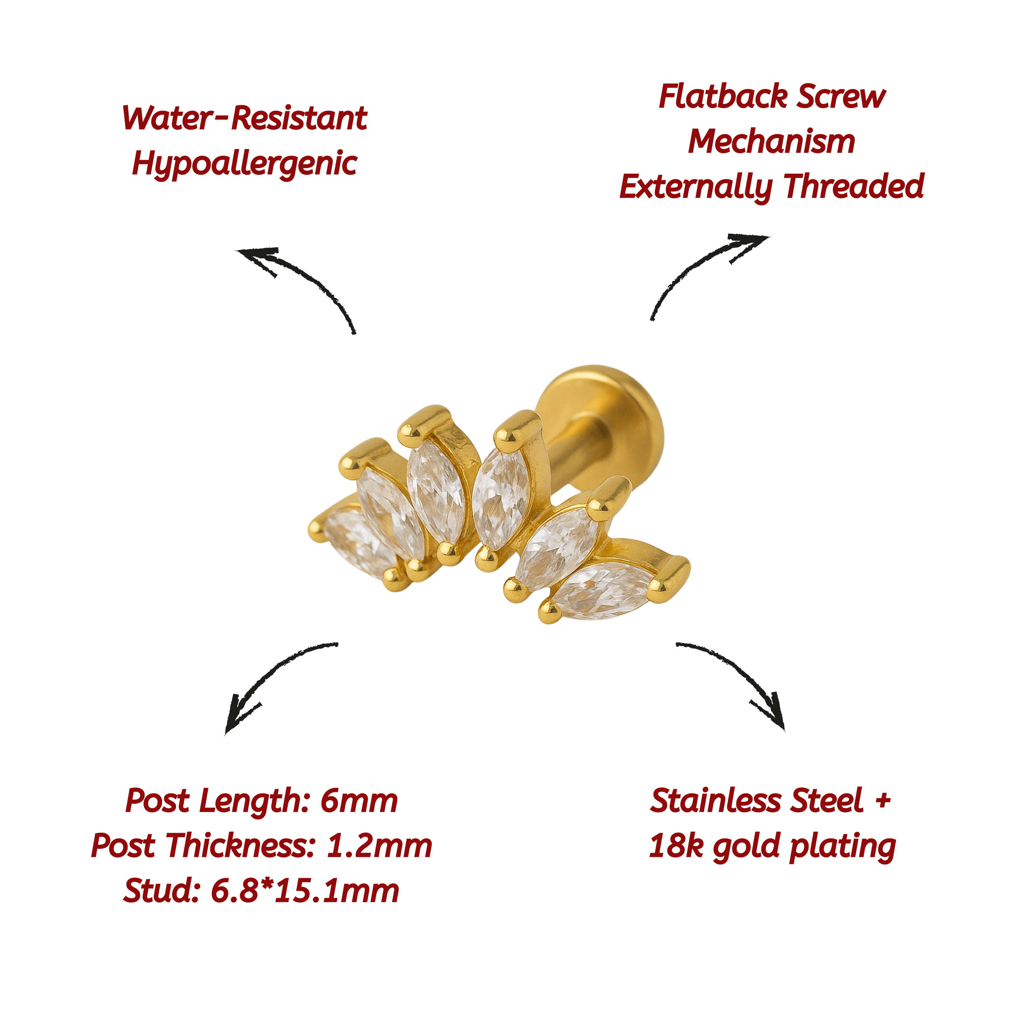 - Stud: 6.8*15.1mm